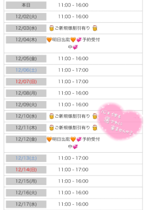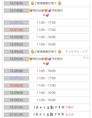 12/1〜12/31の出勤予定\(◡̈)/♥︎