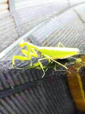 👼今日も家事や子育てお仕事やお勉強を頑張っている女性の皆様お疲れさまです💖少し涼しくなって最近、一気に虫が出てきたような気がします😅基本的に、虫はあまり好きではないです😅大きめのバッタ大きめの蜘蛛🐝ミツバチが点々と黄色い糞を垂らしてたり一番嫌なカメムシもチラホラ見かけるようになったりそして、すごく久しぶりにカマキリが😳僕の車に鎮座されておられた😁笑
