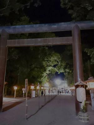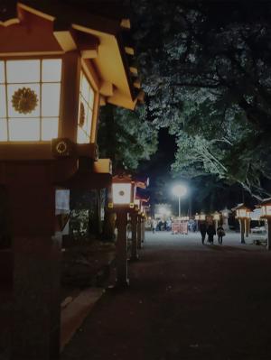 ⛩️宮崎神宮には毎月の朔日詣り、毎年の初詣で行っていますがいつも昼間なので参道灯籠が灯るなかの初詣は初めてでした🎵風情があって、この雰囲気も良きです🍀新鮮な景色が見られて良かったです👍
