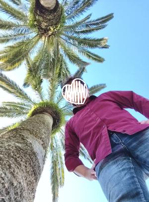 こんな写真を撮っちゃう👼僕♂流星です😁笑🌴ワシントニアパームと円陣を組む👼漢♂流星☆彡😁笑